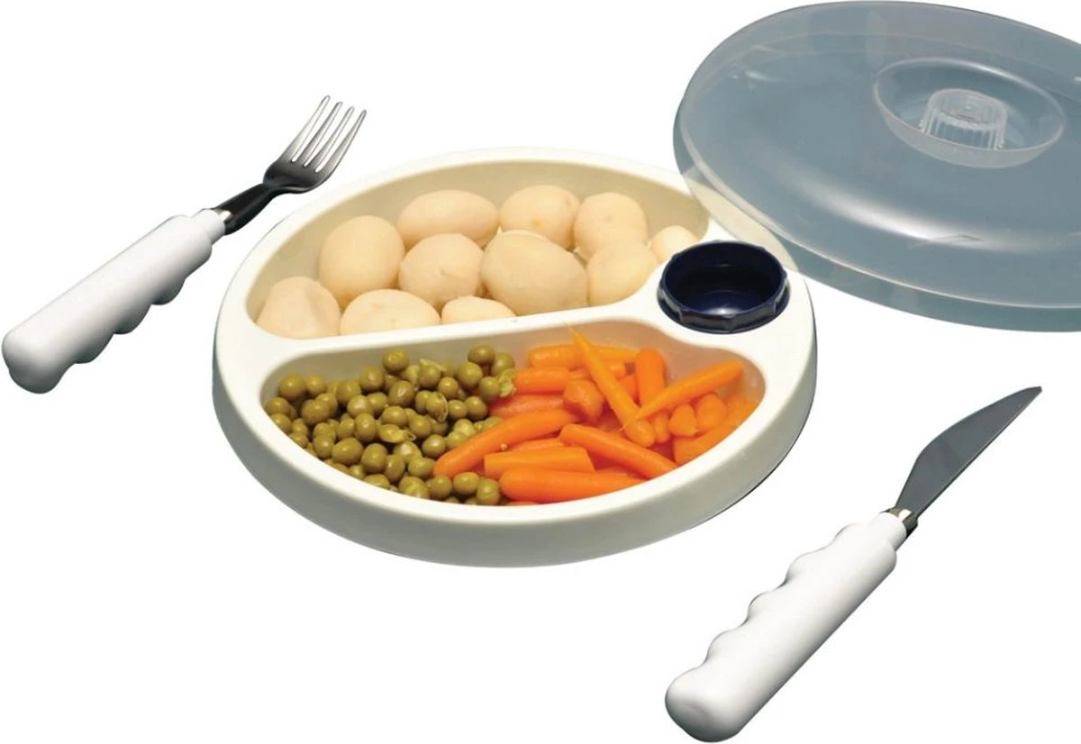 Houd uw maaltijden langer warm met dit praktische warmhoudbord van Able2. Vul het reservoir van het warmhoudbord met heet (niet kokend) water. Dit bord beschikt over twee vakken, waardoor u de maaltijd kunt scheiden. De knop is ook als eierdop te gebruiken.