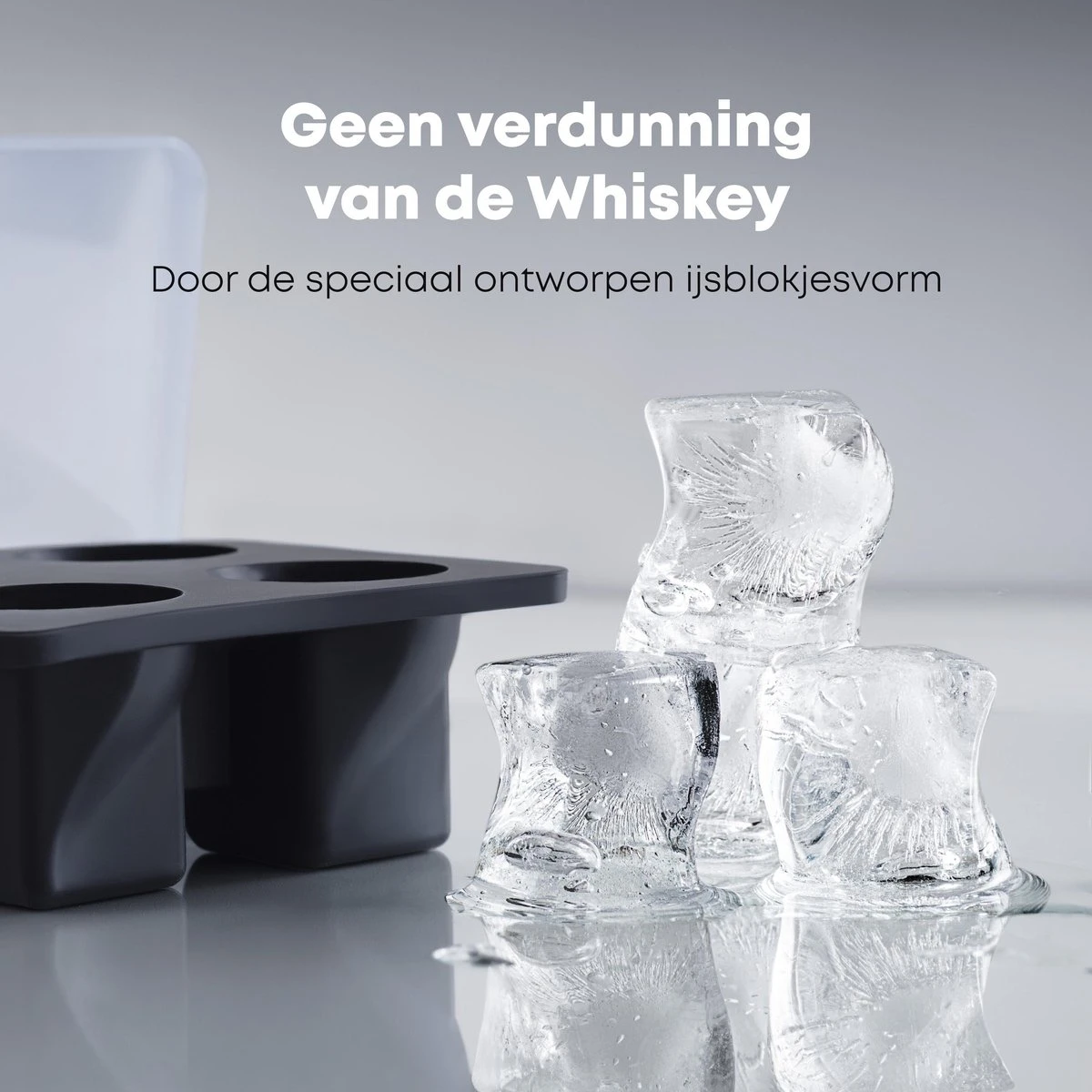 De whiskey glazen set worden geleverd met een unieke ijsblokjes vorm. De ijsblokjes passen perfect in het glas en brengen het drankje op de ideale temperatuur, zonder de whiskey te verdunnen. Zo behoudt de whiskey zijn smaak en karakter. Laat hem over je tong rollen en geniet van iedere slok!