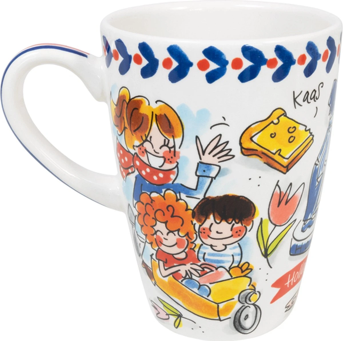 We love Holland! De nieuwe Hollands Glorie lijn van Blond Amsterdam is vormgegeven in frisse rood/wit/blauwe tinten en voorzien van typisch Hollandse illustraties. Op deze xl beker staan o.a. illustraties van klompen, een koe en bakfiets.