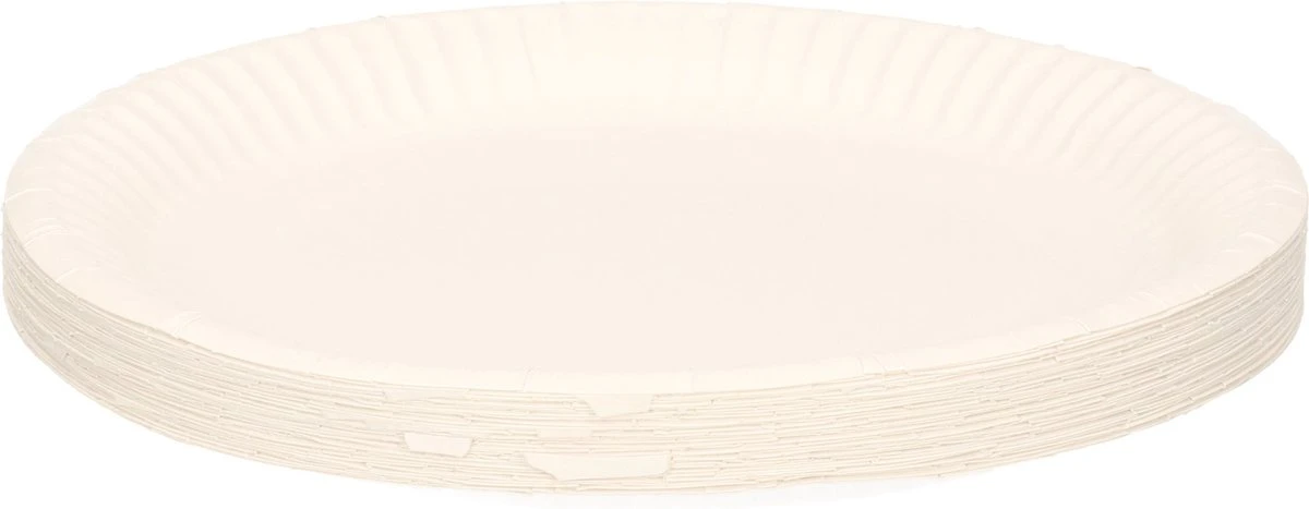 35x Witte wegwerp bordjes van karton rond. Formaat: 18 cm in diameter, 1 cm hoog. Materiaal: karton (170 grams).