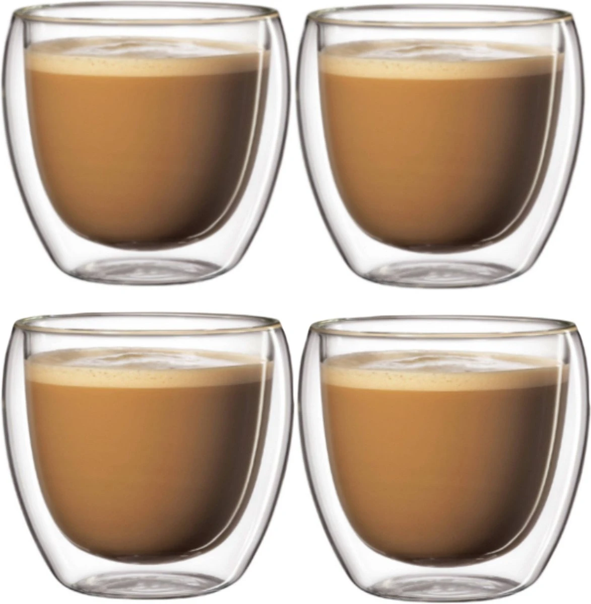 | Verpakkingsinhoud | Dubbelwandige glazen – 250 ml – 4 stuks |