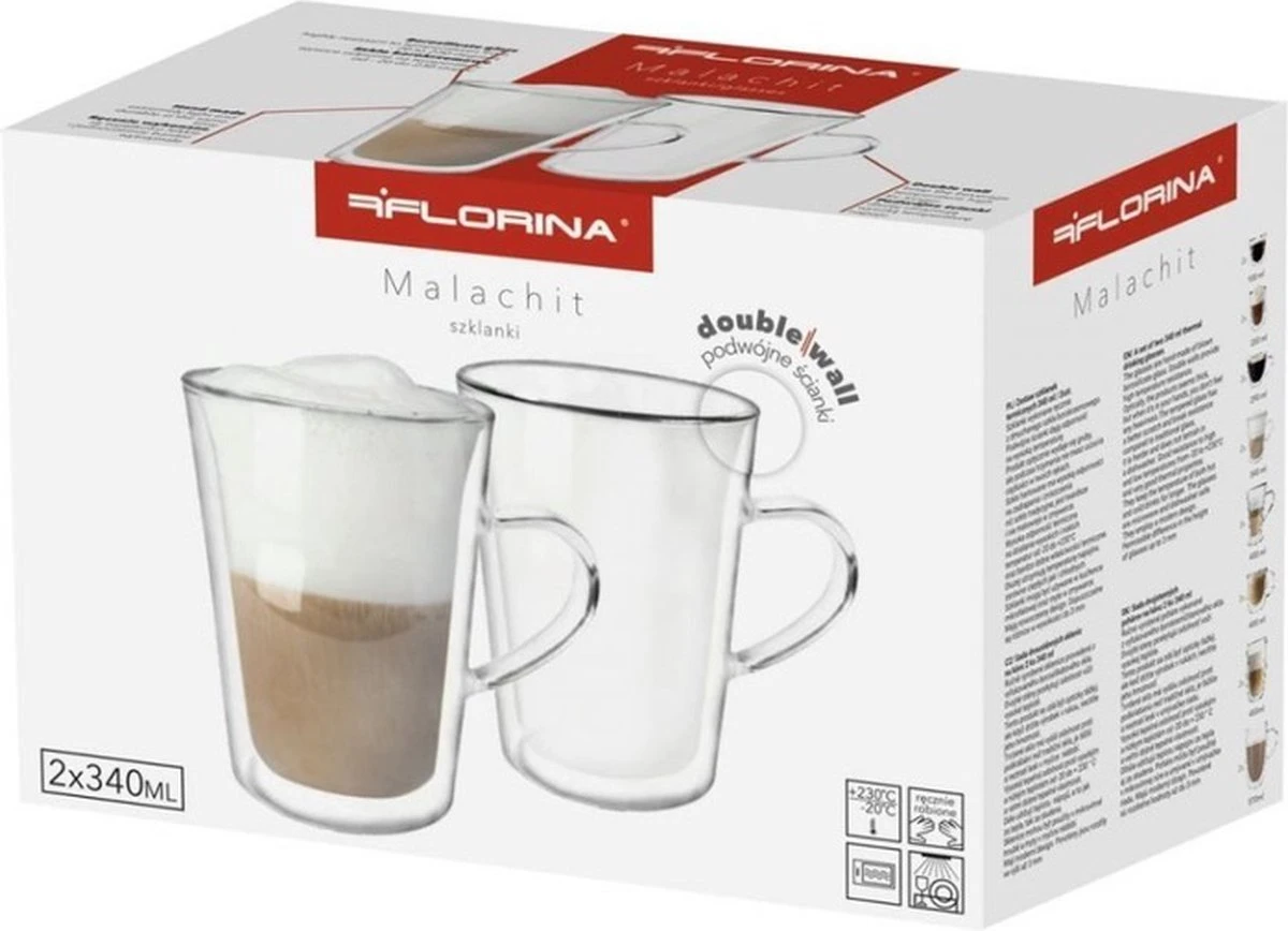 Florina Dubbelwandige Koffieglazen Of Theeglazen Met Oor 340 ML – Set Van 2 – Gehard Glas