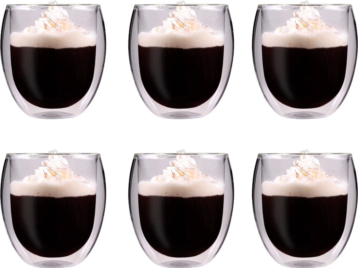 - Dubbelwandige glazen zijn van gehard glas gemaakt; ook wel borosilicaatglas genoemd.
