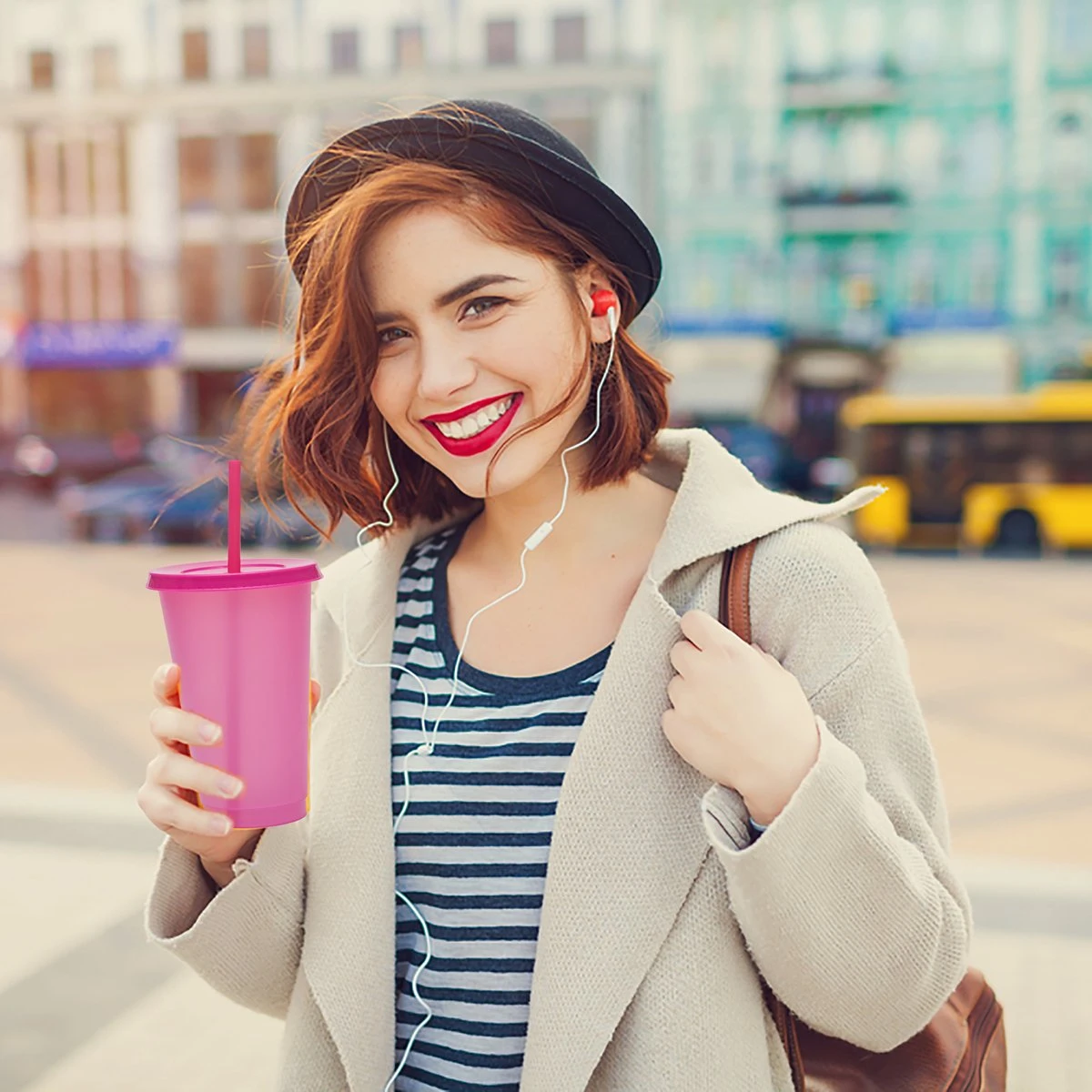 Het slanke en moderne ontwerp van deze bekers maakt ze tot een stijlvolle keuze voor elke gelegenheid. Of je nu naar je werk gaat, naar een picknick of naar een feestje, je zult genieten van het gebruiksgemak van deze bekers. De deksels zijn goed afgesloten om morsen en lekken te voorkomen, terwijl de rietjes het gemakkelijk maken om een slok te nemen zonder het deksel te hoeven verwijderen.