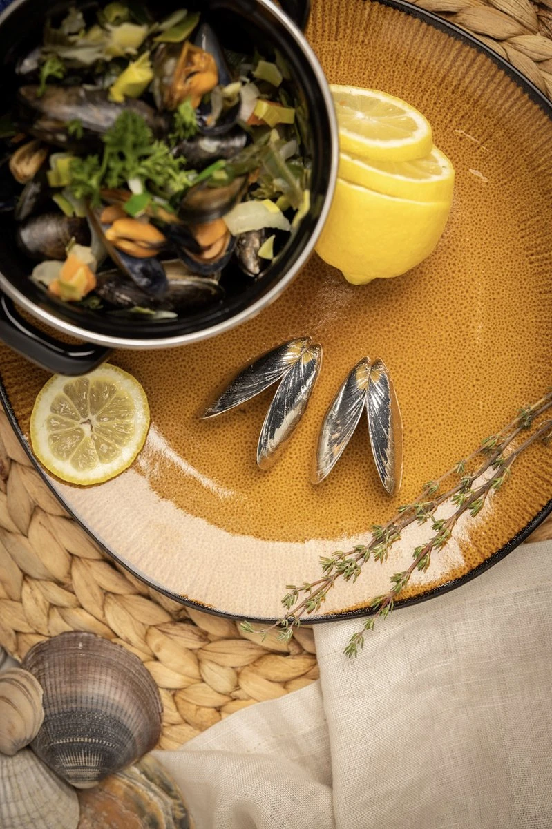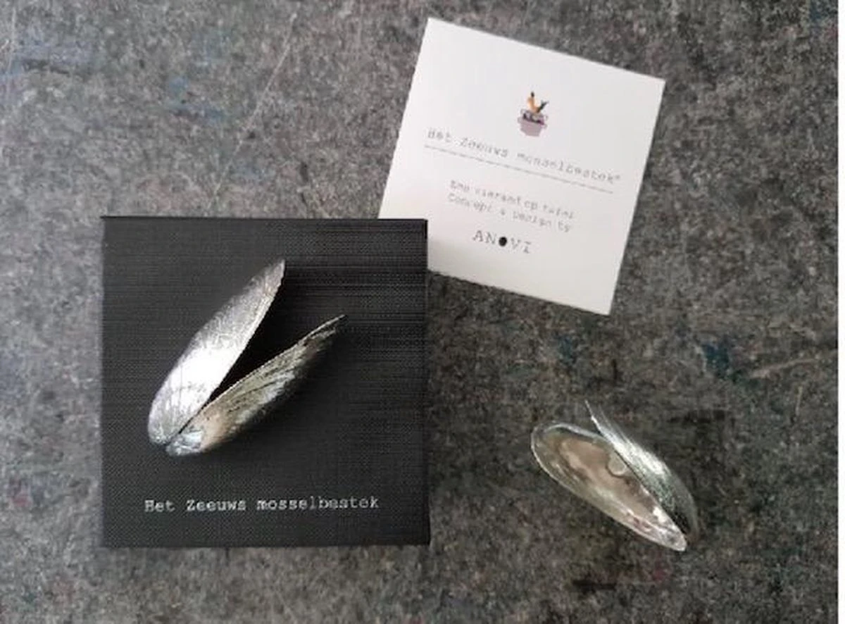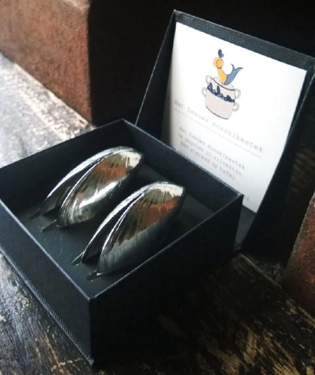 Echte mosseleters gebruiken de schelp van een mossel om de volgende uit zijn schelp te halen. Met het Zeeuws mosselbestek hoef je nooit meer te zoeken naar de fijnste mosselschelp, de zilvergekleurde mossel maakt gebruik van een speciaal veertje zodat het net zo werkt als een echte mossel.