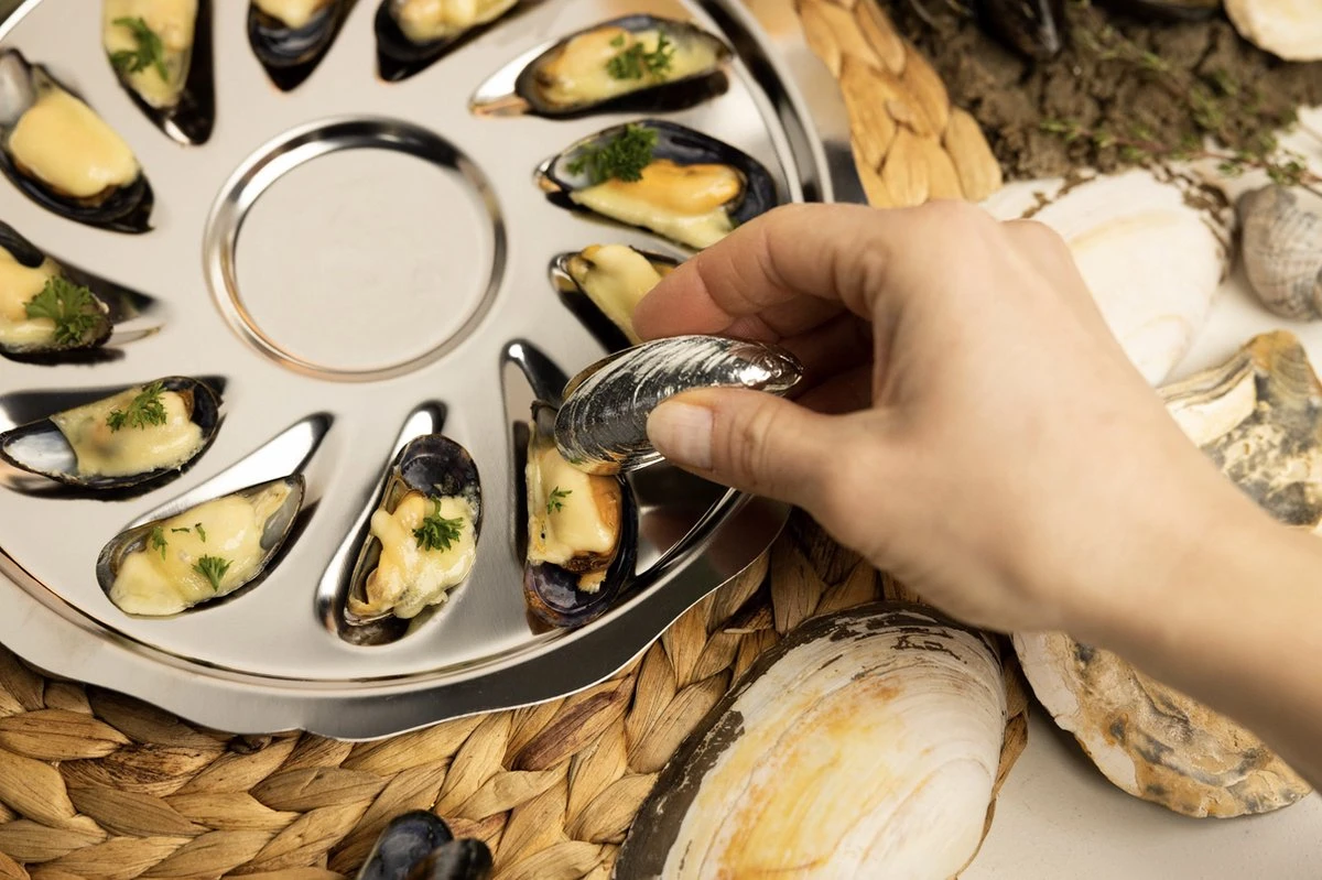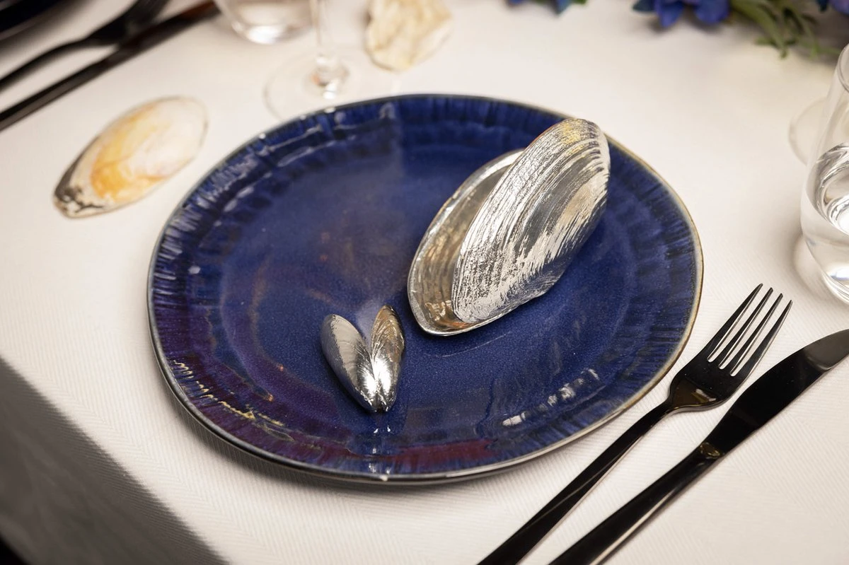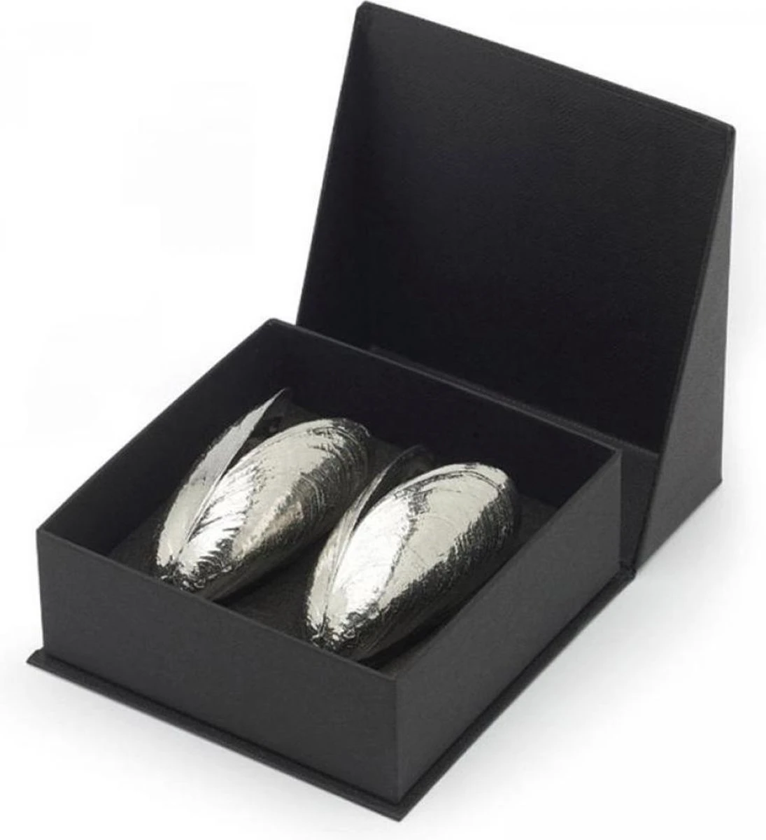 Echte mosseleters gebruiken de schelp van een mossel om de volgende uit zijn schelp te halen. Met het Zeeuws mosselbestek hoef je nooit meer te zoeken naar de fijnste mosselschelp, de zilvergekleurde mossel maakt gebruik van een speciaal veertje zodat het net zo werkt als een echte mossel.