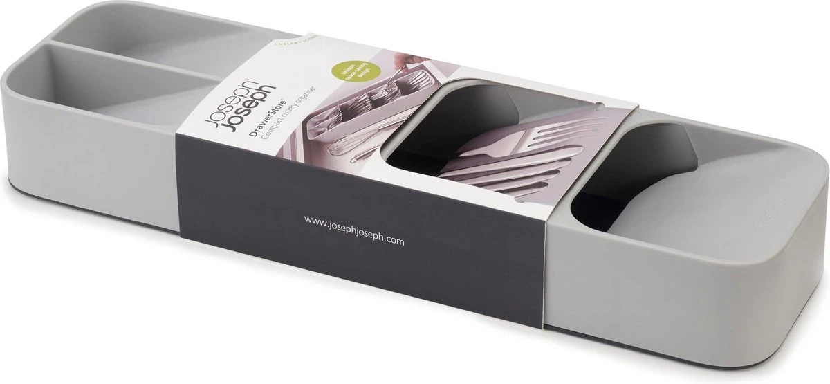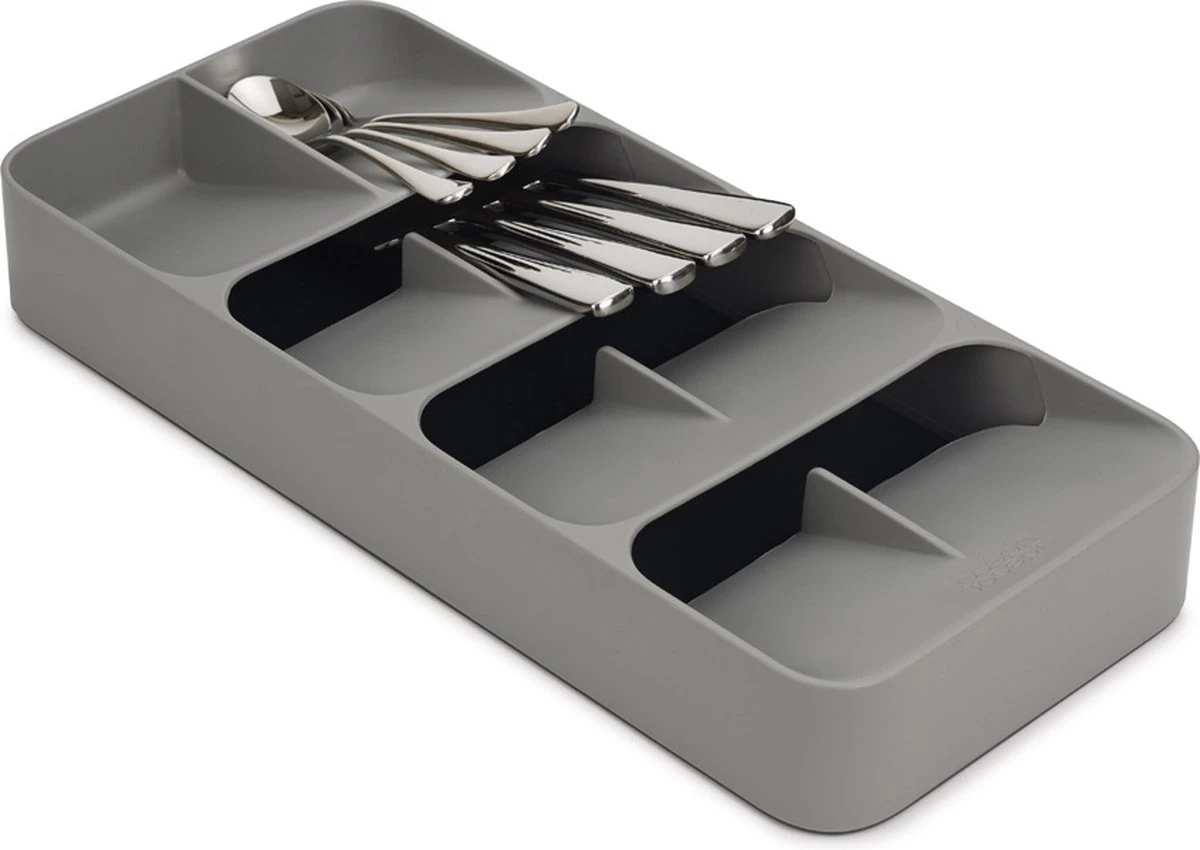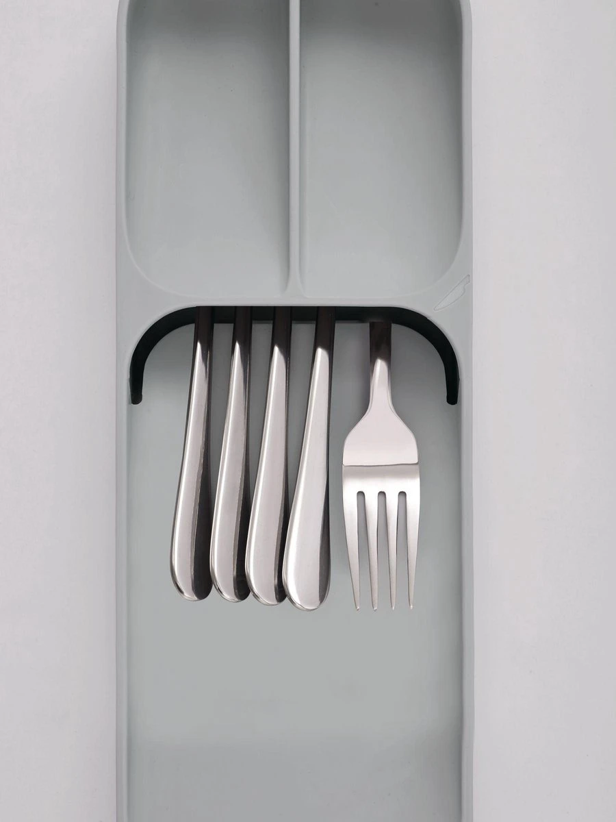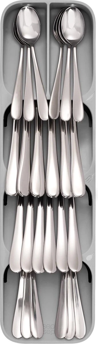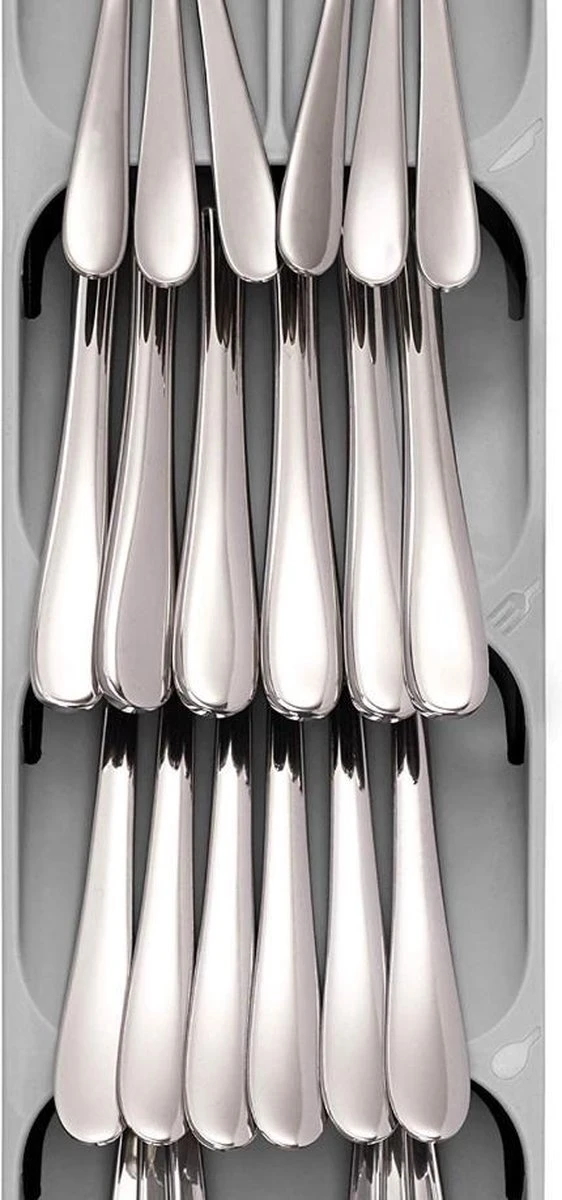 Met deze bestekbak van het merk Joseph Joseph kun je de ruimte in je keukenlade optimaal benutten – ideaal voor kleine keukens! De unieke constructie van deze keukenlade organizer creëert ruimte voor messen, vorken en lepels die in conventionele bestekdozen minstens twee keer zoveel ruimte nodig hebben.