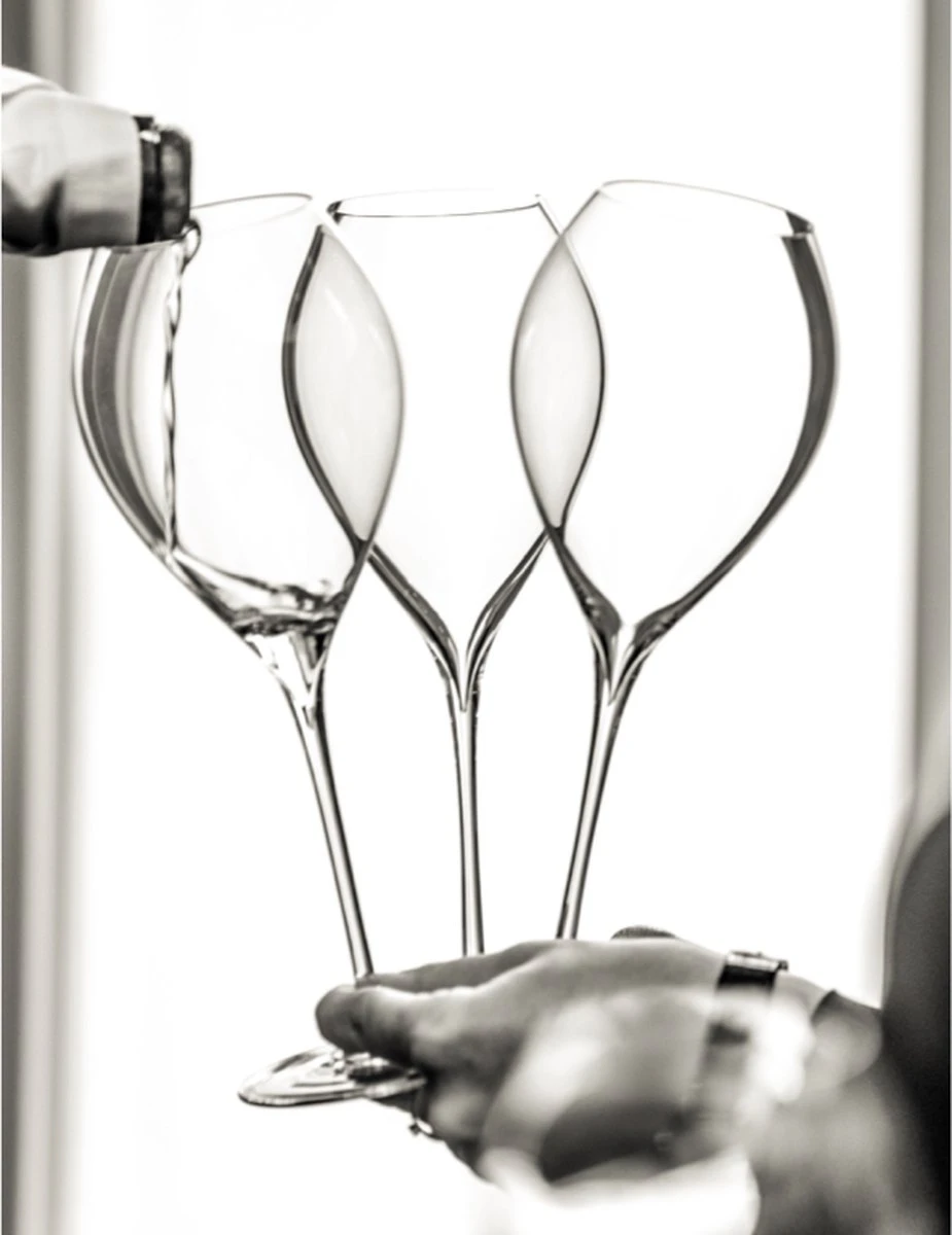 Dit is het enige echte champagneglas van Lehmann: het bedrijf dat glaswerk levert aan alle bekende Champagnehuizen (Moët & Chandon, Bollinger, Veuve Clicquot). Ontwikkeld in samenwerking met Philippe Jamesse, de Franse topsommelier, om mousserende wijnen en in het bijzonder champagne ultiem tot zijn recht te laten komen.