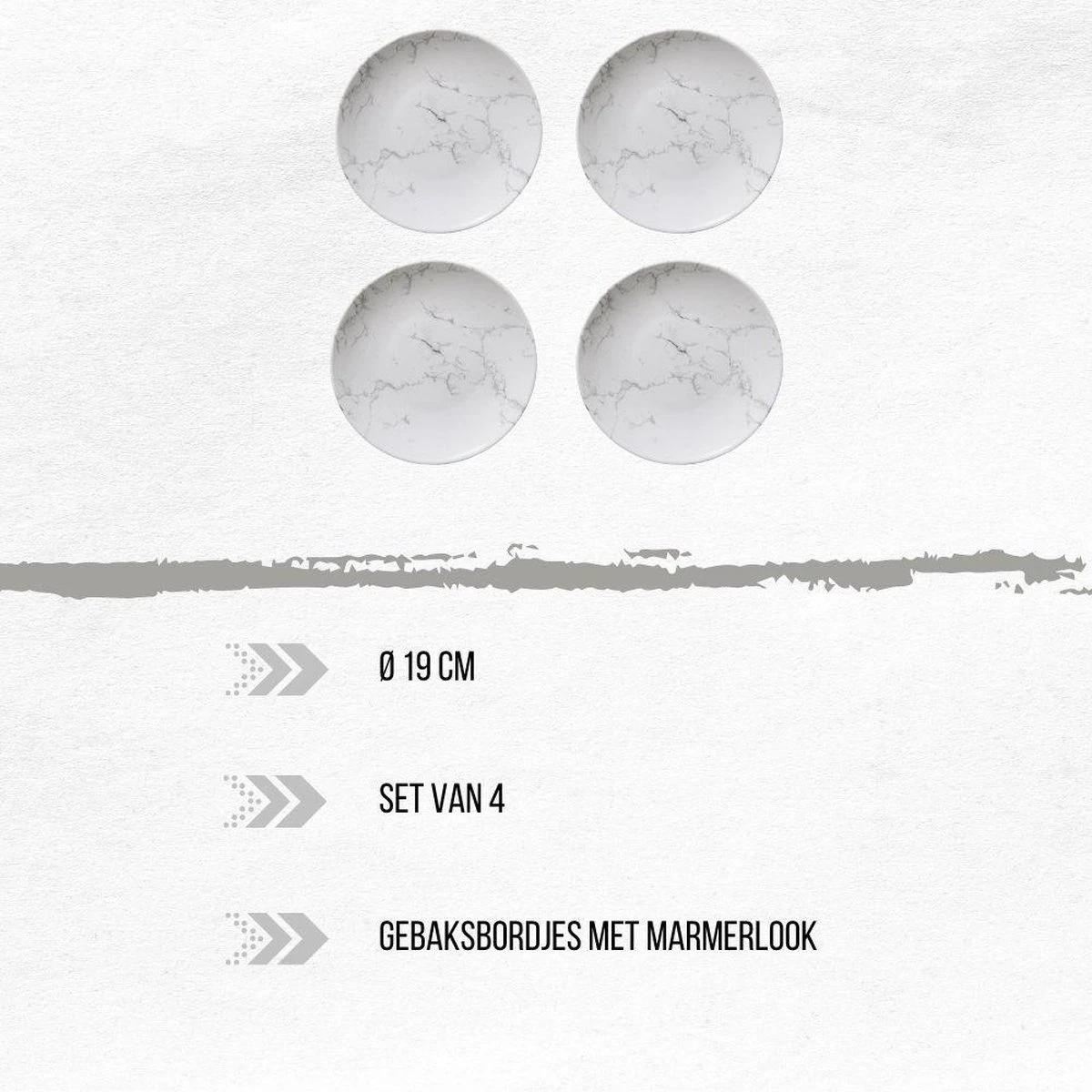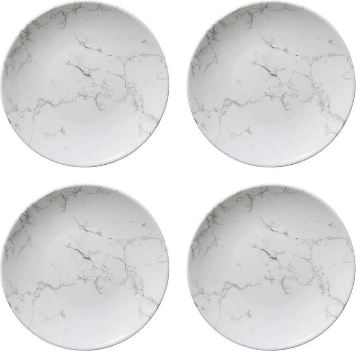 Deze Orange85 gebaksbordjes wit zijn perfect voor het serveren van gebak en andere lekkernijen. Door de witte marmer look hebben de bordjes een chique uitstraling. De borden worden verkocht per vier stuks en zijn gemaakt van aardewerk. De diameter van de borden is 19 cm. Eventueel zijn de bordjes ook te gebruiken als kleine ontbijtborden.