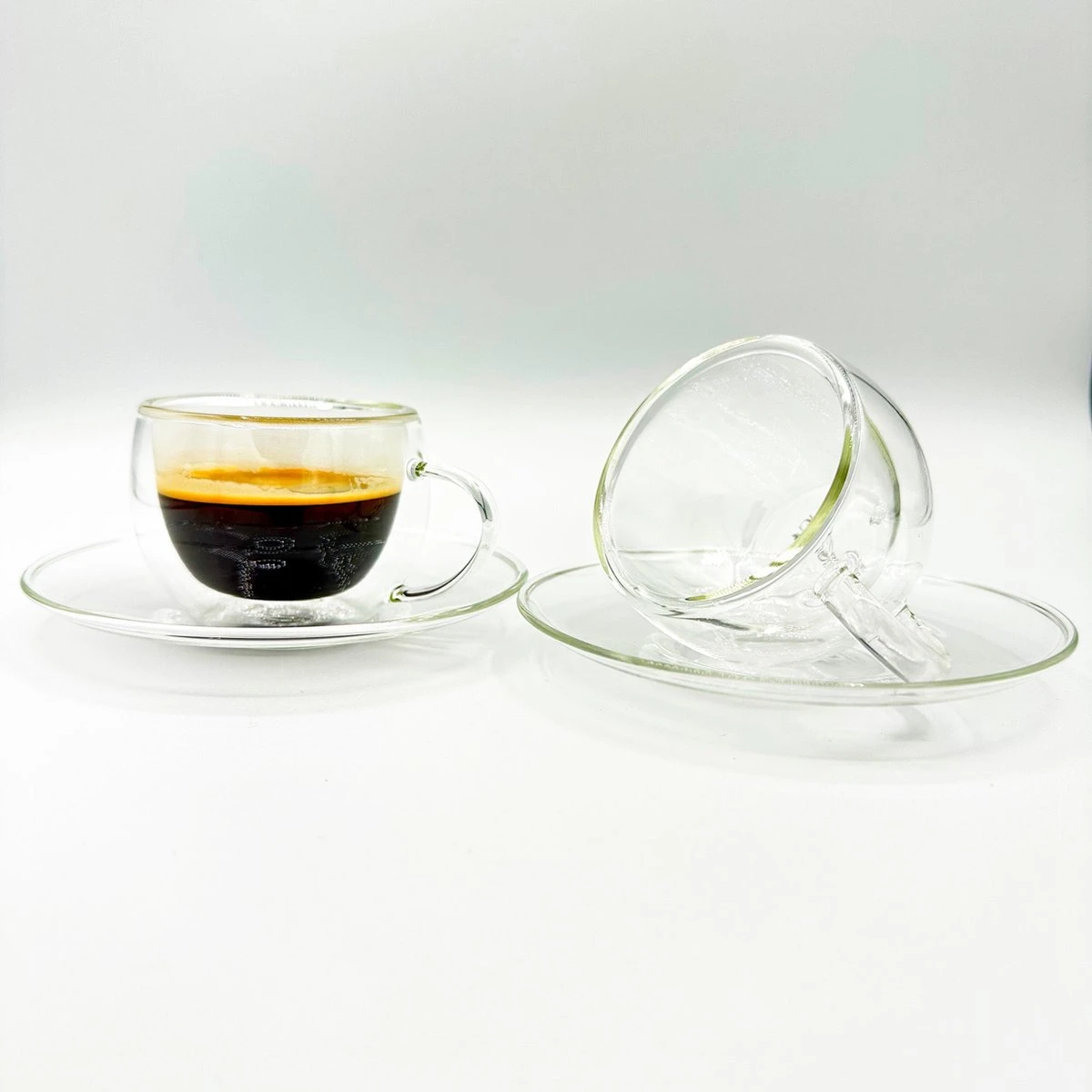 De kopjes en schoteltjes zijn gemaakt van hoogwaardig borosilicaatglas, dat bekend staat om