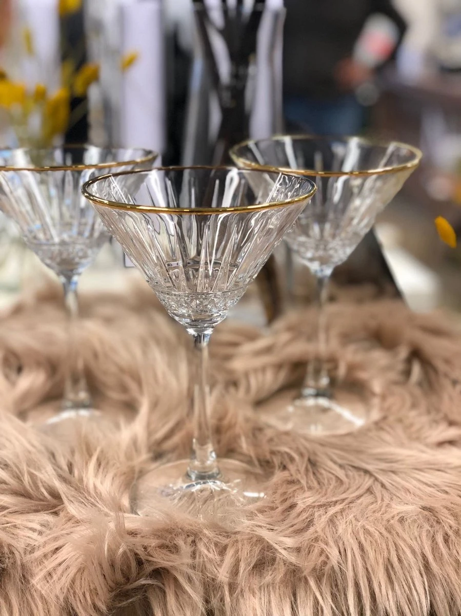 De elegante Elysia martiniglazen hebben een prachtige glasbewerking met golden touch afwerking. De prachtige uitlopende kelk en hoge steel geeft deze glazen een chique en elegant karakter. Daarnaast heeft een kelk een prachtige opvallende glasbewerking. Deze Elysia martini cocktailglazen zijn gemaakt van extreem sterk en helder glas, ze kunnen dus goed tegen een stootje. Na gebruik kunnen deze glazen niet reinigen in de vaatwasmachine. Deze set bestaat uit 4 martiniglazen met een inhoudsmaat van 22 cl.