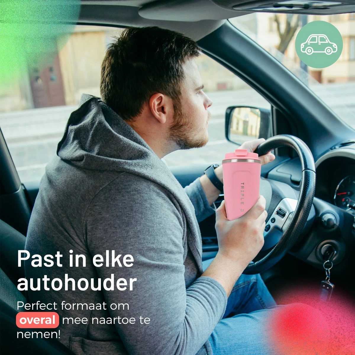 Ben je op zoek naar een handige en stijlvolle koffiebeker to go om je koffie mee te nemen? Dan is de Triple J® Koffiebeker To Go ideaal! Gemaakt van hoogwaardig roestvrij staal, met een inhoud van 510ml en voorzien van een dubbele wandisolatie, blijft je koffie tot wel 4 uur warm en past de koffiebeker to go in vrijwel elke autohouder.
